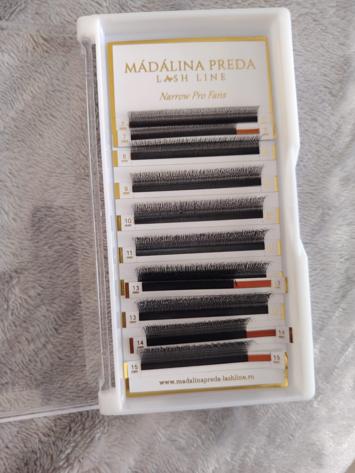 Cutia are 16 rânduri. Include 2 rânduri de 7 mm, 2 de 8 mm, 2 de 9 mm, 2 de 10 mm, 2 de 11 mm, 2 de 12 mm, 2 de 13 mm, 1 de 14 mm și 1 de 15 mm. Ai dublu din cele mai folosite lungimi, ceea ce îți asigură lucrări eficiente și organizate pentru orice mapping.
