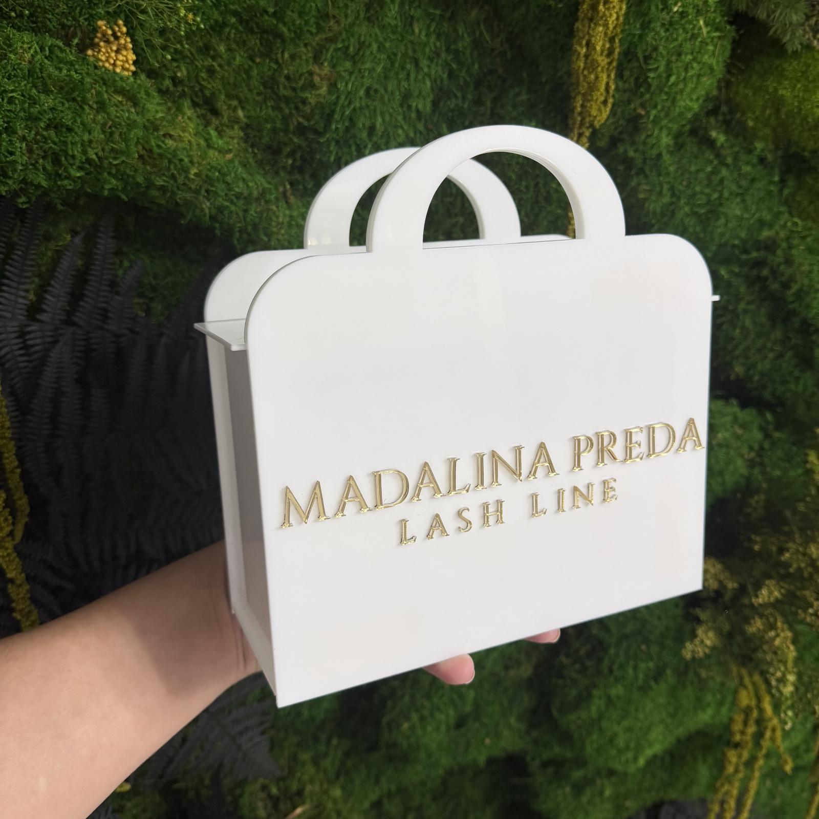 Geantă acrilică pentru depozitarea și organizarea extensiilor de gene. Include 10 palete. Ideală pentru lash artiști mobili și pentru salon.
