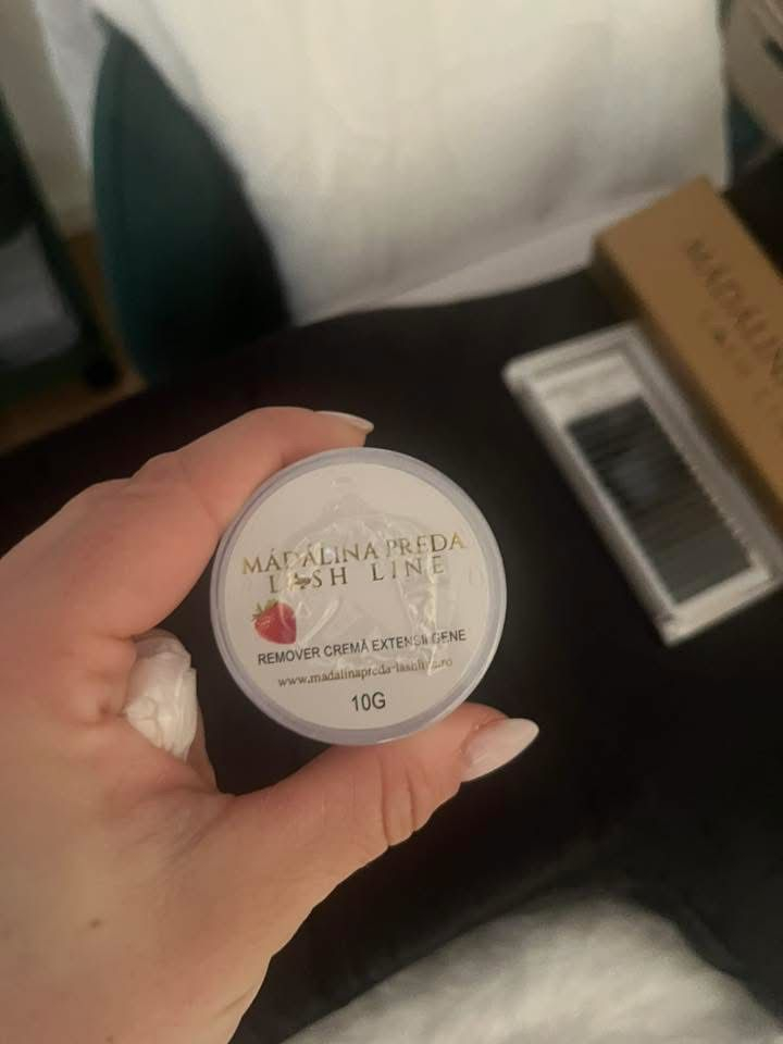 Removerul cremă cu aromă de căpșuni îndepărtează extensiile de gene într-un mod controlat și sigur. Formula stă fix pe fir și nu curge. Tu aplici local, dizolvi adezivul și îndepărtezi extensiile fără să afectezi genele naturale. Consistența cremoasă te ajută să lucrezi precis. Aroma de căpșuni face experiența plăcută pentru clientă.